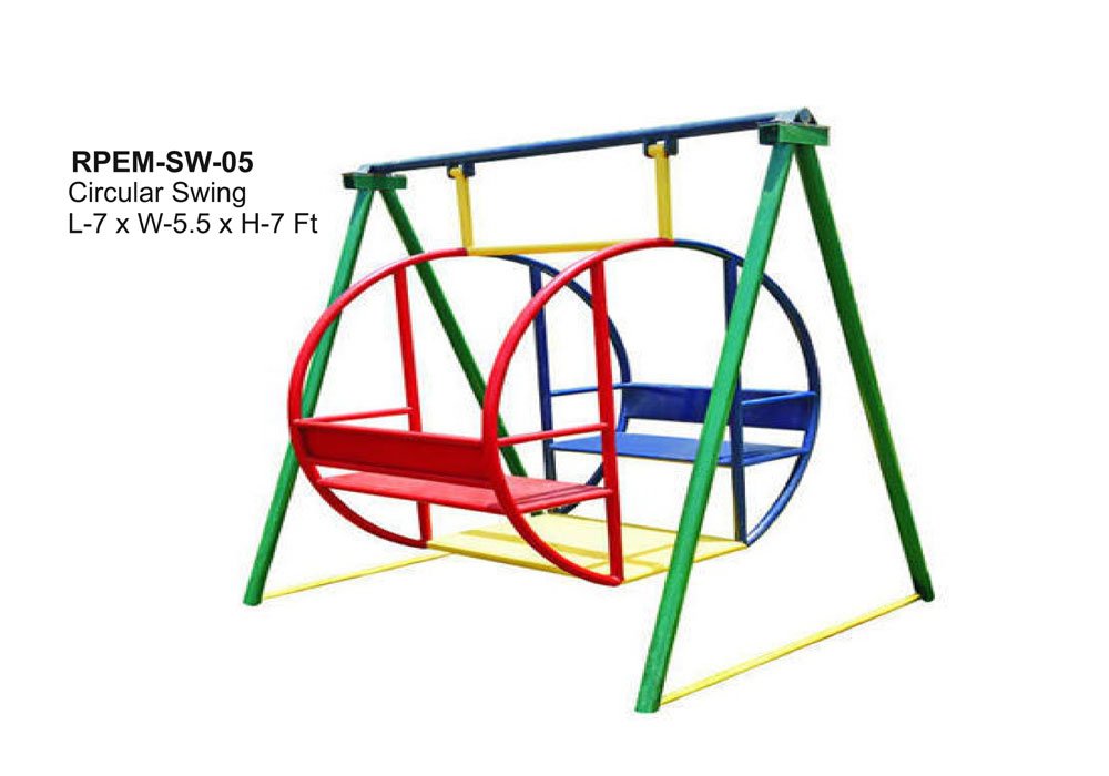 The Circular Swing is a lively and durable play equipment designed to provide hours of entertainment for kids. Its unique circular frame design features back-to-back seating, allowing two children to swing together in opposite directions, promoting social interaction and fun. Made from heavy-duty powder-coated mild steel, this swing is suitable for multiple users and can withstand continuous outdoor use, making it perfect for parks, playgrounds, and residential spaces.