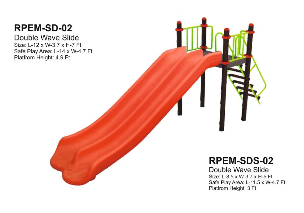 Double Wave Slide is the ultimate outdoor play equipment designed to bring endless fun to kids of various ages. With two compact versions to suit different needs, this slide is perfect for little ones aged 3-8 and bigger kids aged 5-12 years who crave more thrilling experiences. The smaller model features a 3 ft platform height, whereas the larger setup boasts a 4.9 ft platform height, ensuring that every child can enjoy the excitement of sliding with friends. Both models are built to withstand the elements, thanks to durable FRP slides and MS powder-coated frames that guarantee long-term outdoor use. The focus on safety and enjoyment is evident in the design, which includes features such as side guardrails, safe stair access, and a wider design that can accommodate two children at once.