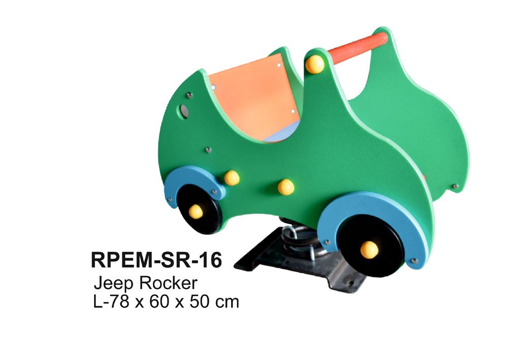 Get ready to rev up the fun with the Jeep Rocker, a lively and engaging play equipment designed to spark imaginative vehicle role-play in kids. Made from durable High-Density Polyethylene (HDPE) and featuring a powder-coated MS spring base, this sturdy rocker is perfect for schools, parks, and indoor play zones. The Jeep Rocker’s enclosed seat provides added safety and support, whereas its wide spring base guarantees a smooth and safe rocking motion.