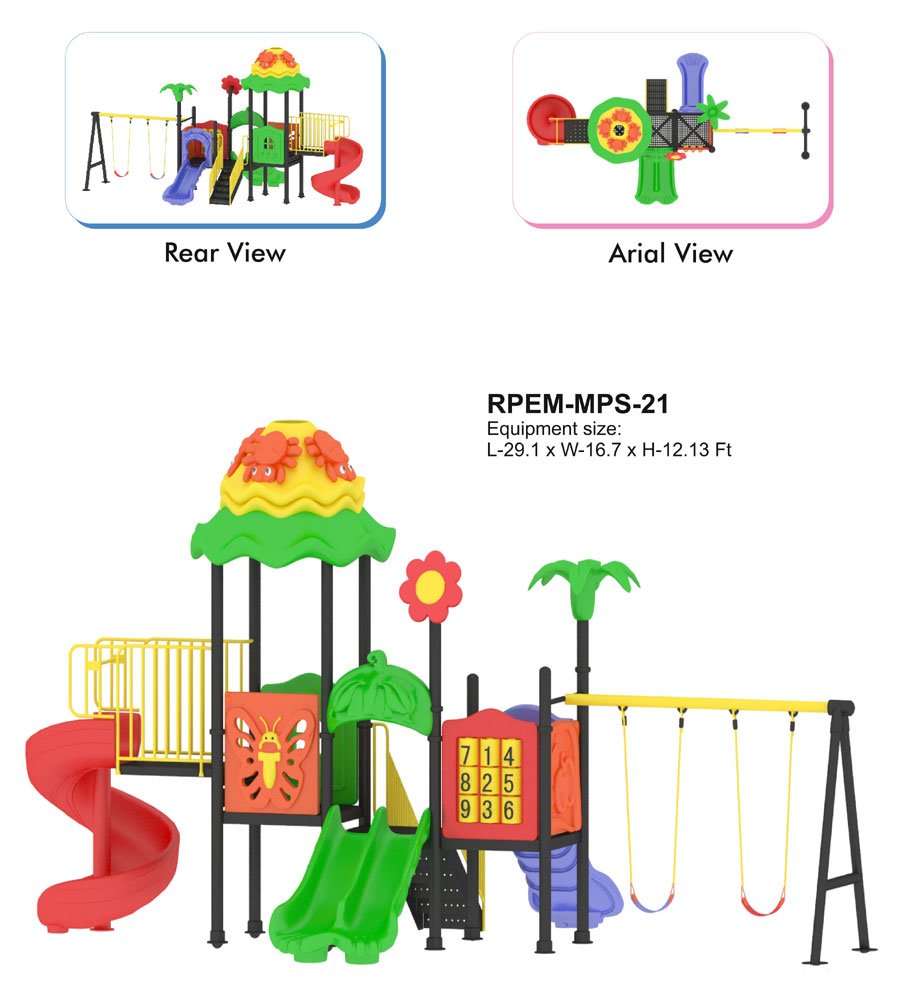 With a recommended capacity of 12-16 children, the Multi Play Station is ideal for backyard gatherings, community parks, or schools. Measuring L-29.1 ft Ă— W-16.7 ft Ă— H-12.13 ft, this playground equipment is designed to provide hours of entertainment and excitement for kids, promoting physical activity, social skills, and cognitive development.