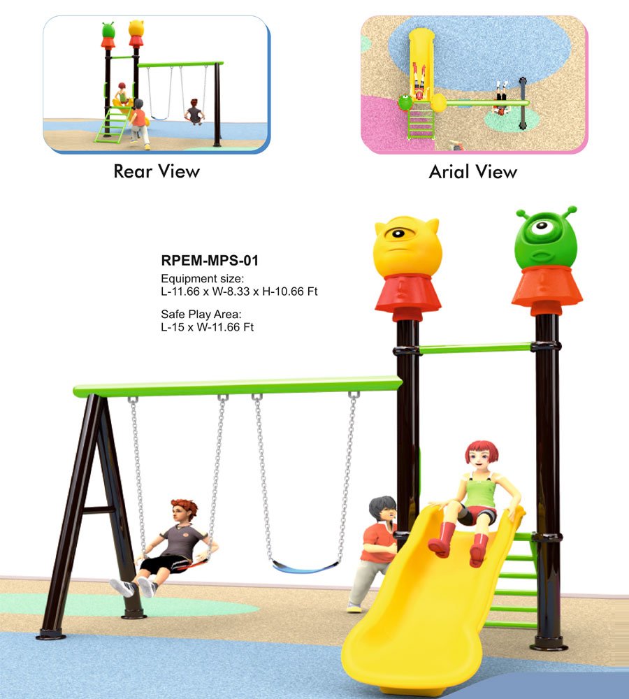 The Multi Play Station RPEM-MPS-01 is a durable outdoor play equipment featuring a slide and swing, promoting physical development and social interaction for kids of all ages.