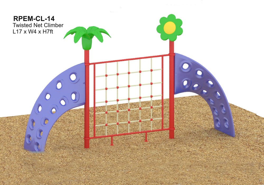 Twisted Net Climber: A unique playground equipment combining net climbing & twisted side panels, ideal for kids aged 5-12, stimulating physical strength & adventurous spirit.