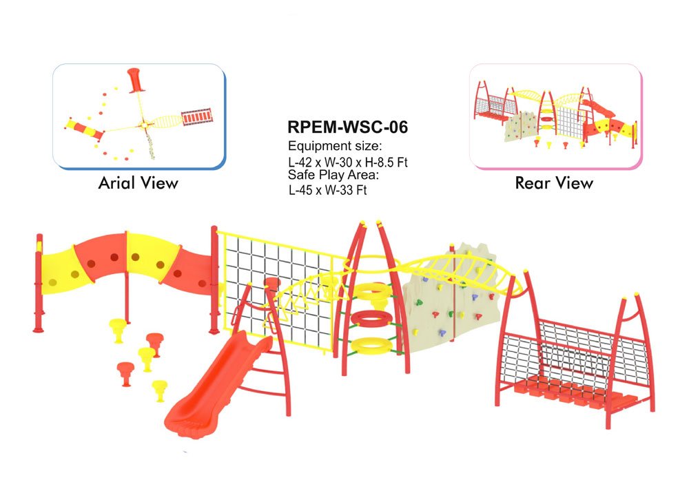 Web Scramblers are dynamic play structures designed to promote full-body exercise and adventure for kids. By incorporating a variety of activities into a single unit, these scramblers offer a thorough way to encourage physical development and group play. The durable steel framing, coated with a weatherproof layer, guarantees that the structure can withstand various environmental conditions, whereas the bright colors add a visually stimulating and fun element to the play experience.